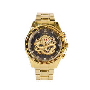 ساعت مردانه طلایی صفحه مشکی مدل DRAGON