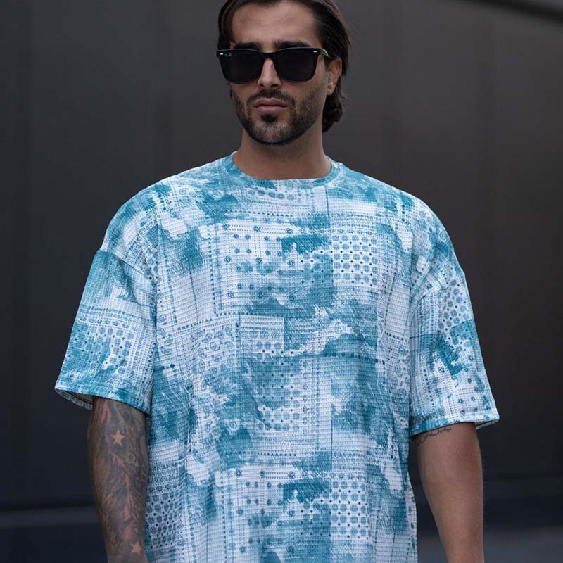 تیشرت مراکشی چاپی سبزآبی مردانه مدل Ramin